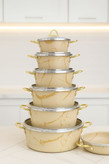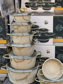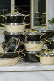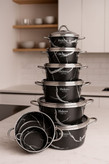 سرویس ۱۴ پارچه هلنا با طراحی مدرن طرح سنگ و بدنه فورج، یکی از زیباترین و کاربردیترین سرویسهای آشپزی موجود در بازار است. این سرویس با پوشش نچسب گرانیتی در بخش داخلی و بیرونی، پختوپز سالمتر و شستوشوی آسانتر را برای شما فراهم میکند.