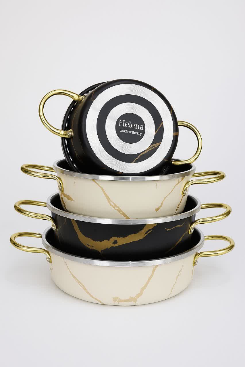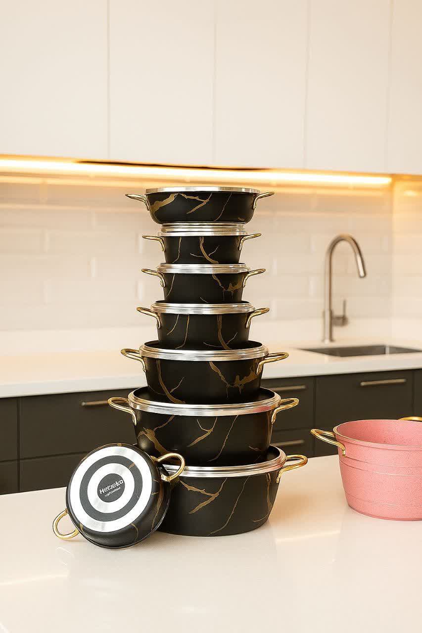 سرویس ۱۴ پارچه هلنا با طراحی مدرن طرح سنگ و بدنه فورج، یکی از زیباترین و کاربردیترین سرویسهای آشپزی موجود در بازار است. این سرویس با پوشش نچسب گرانیتی در بخش داخلی و بیرونی، پختوپز سالمتر و شستوشوی آسانتر را برای شما فراهم میکند.