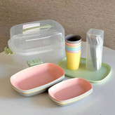 نقاط قوت: طراحی شیک و رنگبندی جذاب کیفیت بالای جنس پلاستیک نظمدهی عالی در باکس مخصوص مناسب برای سفر، کمپینگ و پیکنیک شستوشوی آسان و مقاومت در برابر خط و خش