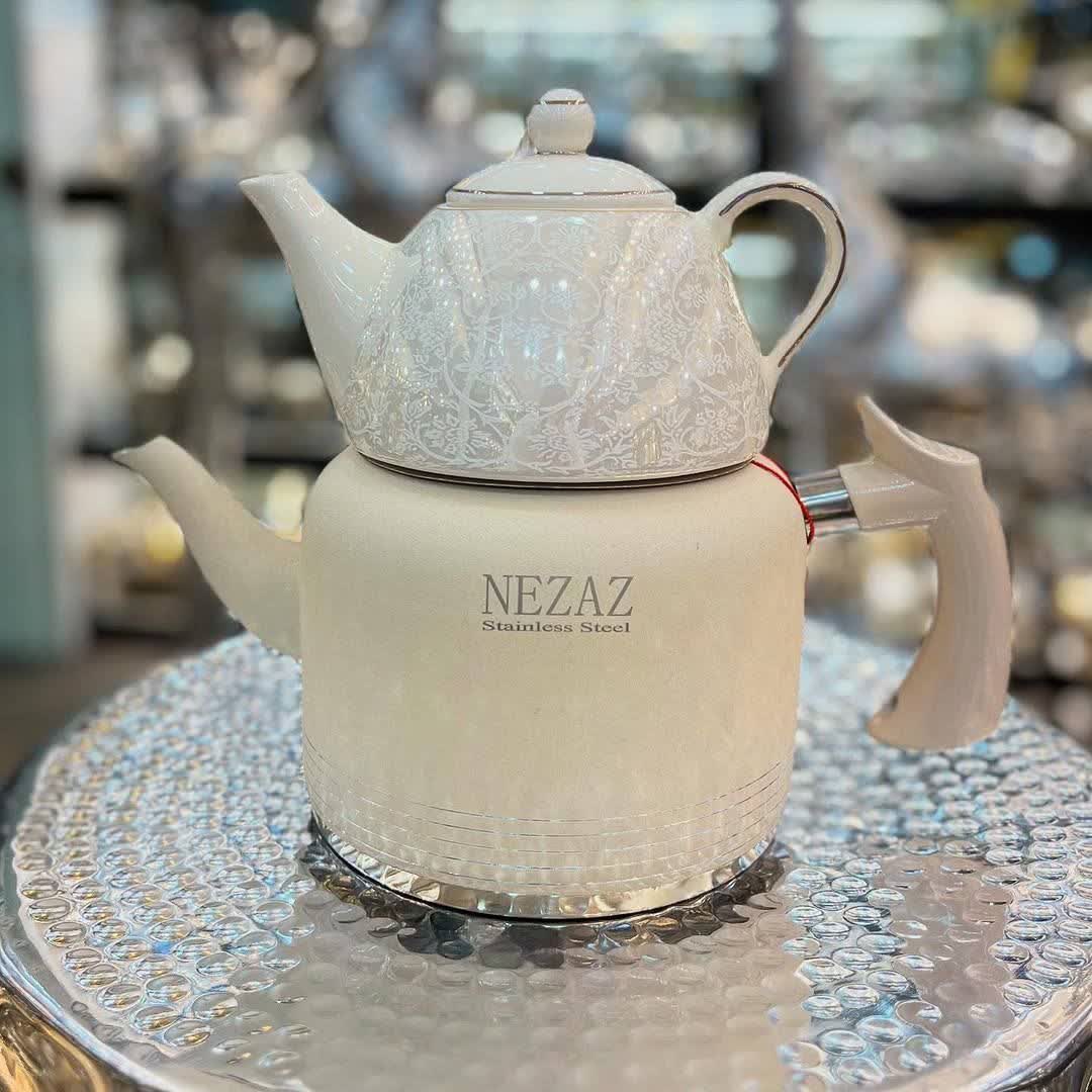 کتری و قوری لولهای رنگی نزاز یکی از شیکترین و باکیفیتترین سرویسهای دمنوش و چایساز خانگی است. طراحی مدرن و رنگهای خاص این محصول، جلوهای لوکس به آشپزخانه شما میدهد. این کتری از استیل ضدزنگ درجهیک ساخته شده و مقاومت بالایی در برابر حرارت و تغییر رنگ دارد. حجم ۲.۵ لیتری کتری برای خانوادههای متوسط کاملاً مناسب است و قوری نیز طراحی هماهنگ و زیبا دارد. برند NEZAZ با تمرکز بر کیفیت ساخت و طراحی ظاهری، محصولی ارائه داده که هم کاربردی است و هم از نظر زیبایی چشمنواز