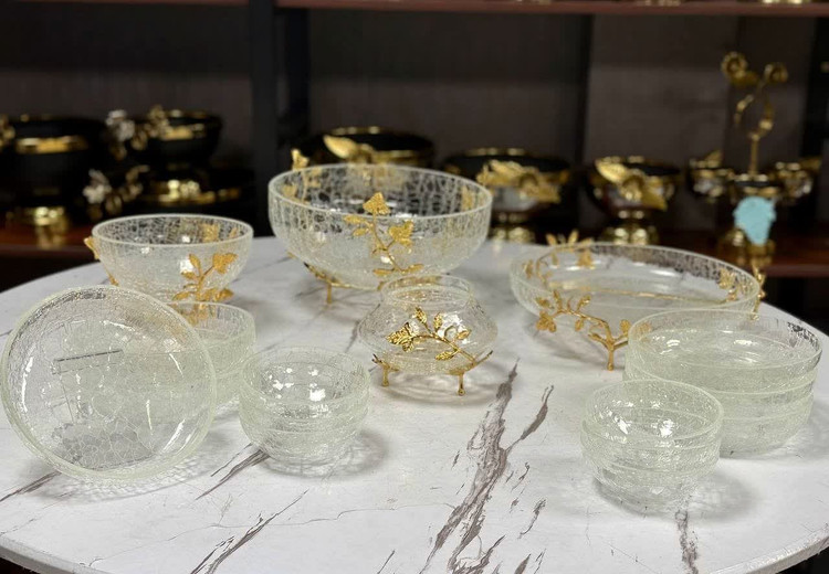 سرویس شیشه ترگ برنجی درجه ۱ با طراحی زیبا و لوکس خود، محیط پذیرایی شما را به فضایی شیک و مرتب تبدیل میکند.
